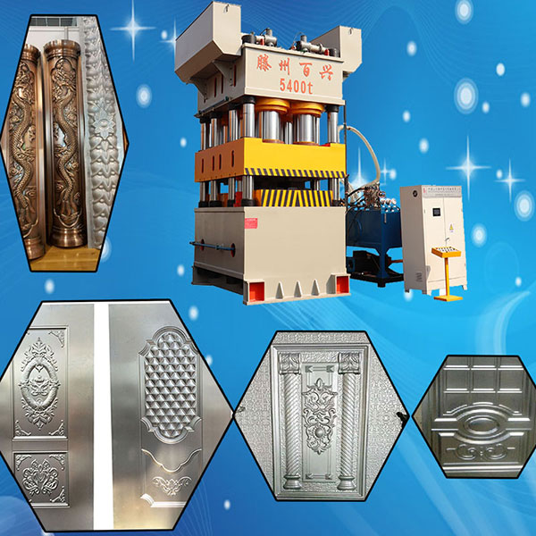 5400吨双动门板压花机是滕州市麻豆APP网站机械有限公司生产的一款用于压制盘龙柱门框花纹,深拉伸门板花纹的三梁八柱压花机。本机为双动压花机,上缸3600吨,下缸1800吨,因为是深拉伸工艺,所有我公司设计了带液压垫顶出杆的机型。
